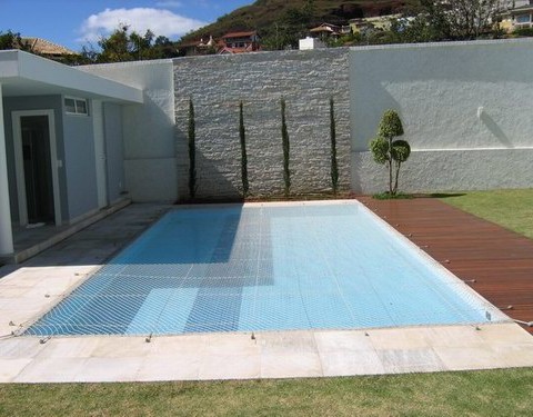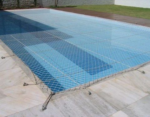 As redes instaladas sob piscina são protegidas com aditivos antioxidante e proteção contra raios ultravioletas. Suporta entre 300kg a 500kg de peso por metro quadrado.